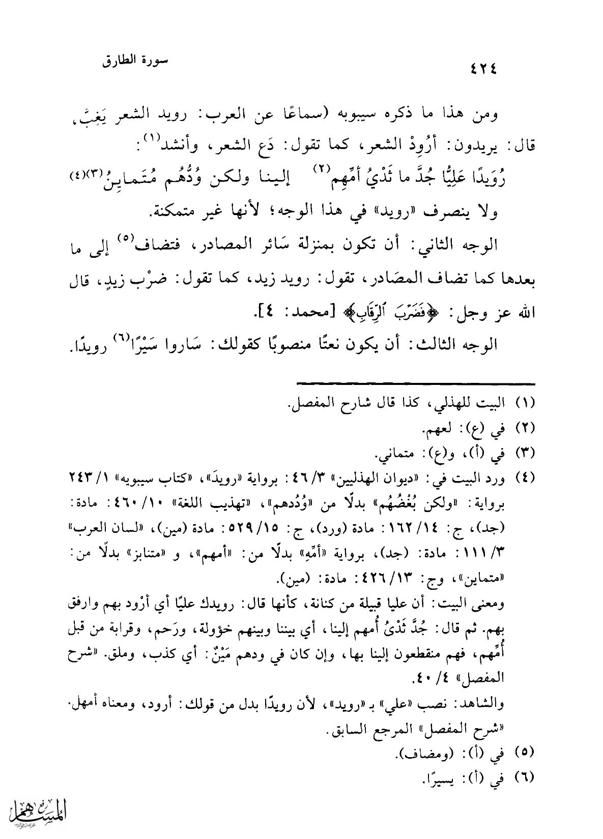 ومن هذا ما ذكره سيبوبه (سماعًا عن العرب: رويد الشعر يَغِبَّ، قال: يريدون: أرُوِدْ الشعر، كما تقول: دَع الشعر، وأنشد (¬1):