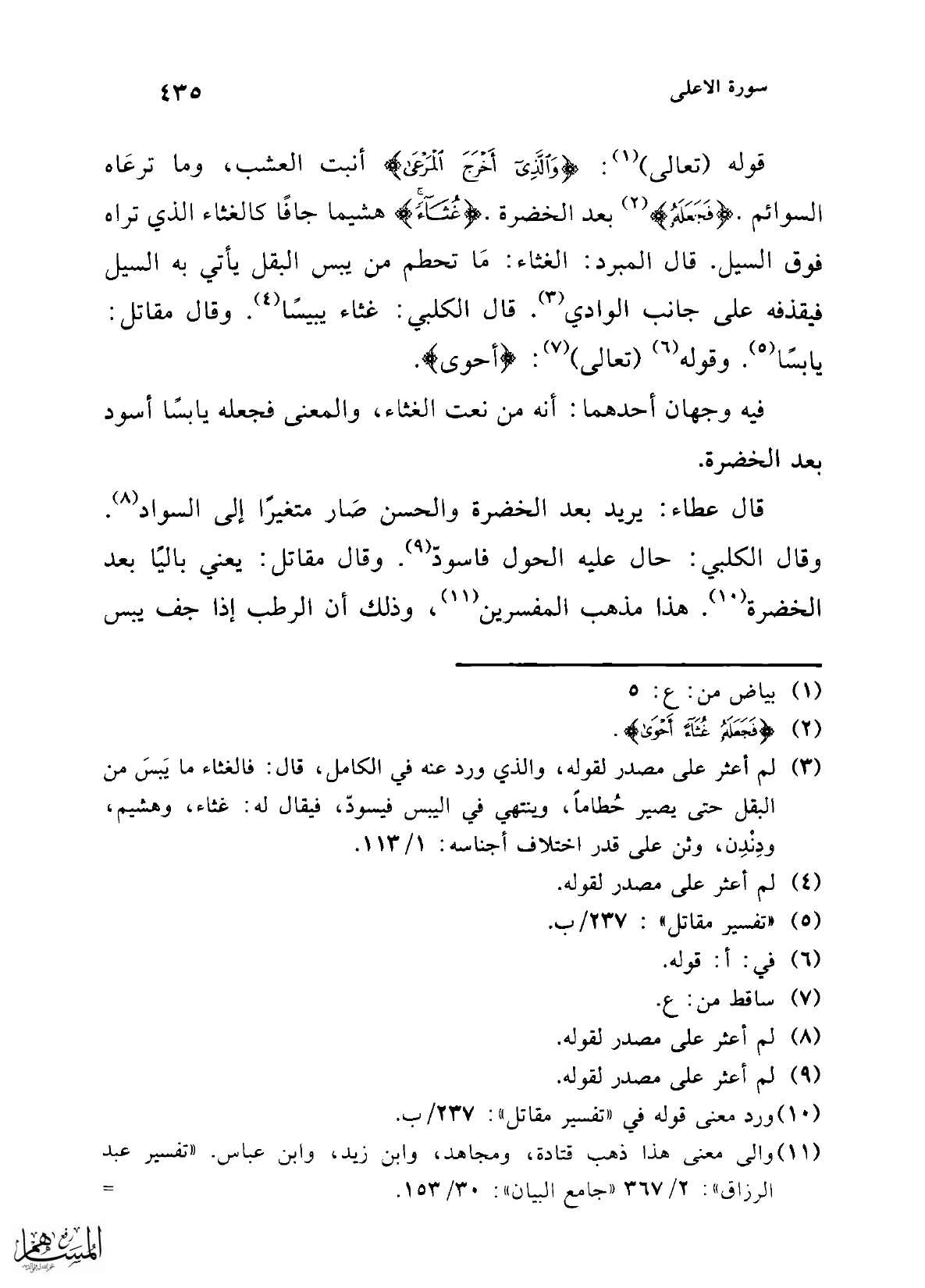 (¬2) {فَجَعَلَهُ غُثَاءً أَحْوَى}.