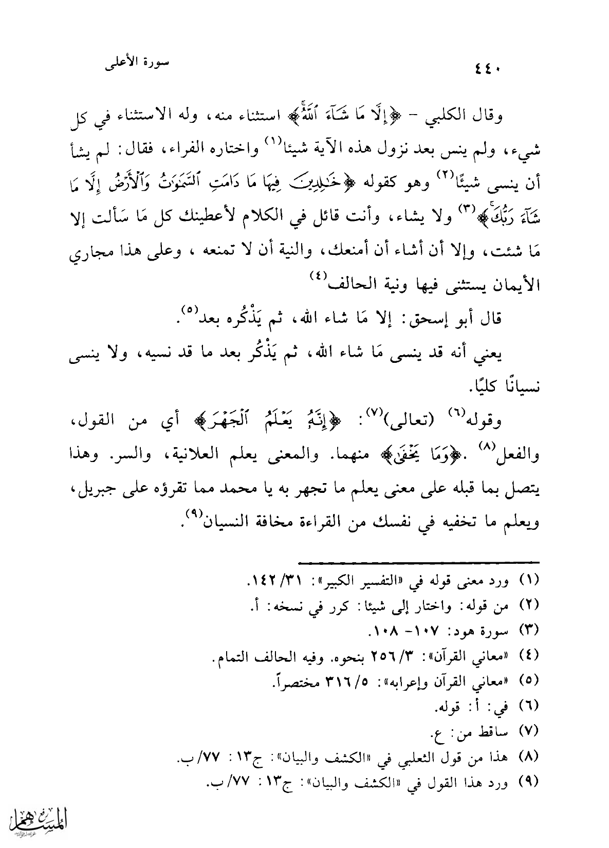 (¬9) ورد هذا القول في "الكشف والبيان": ج 13: 77/ ب.