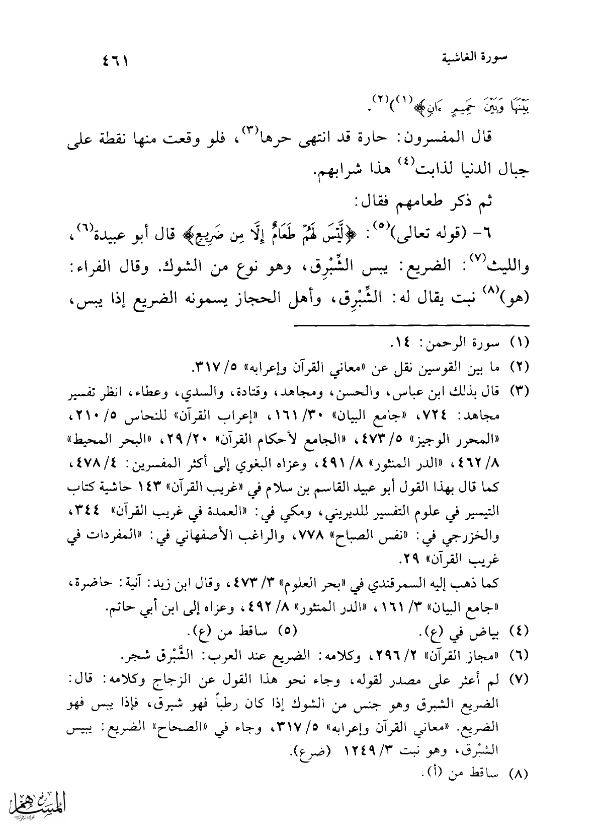 (¬6) "مجاز القرآن" 2/ 296، وكلامه: الضريع عند العرب: الشَّبْرق شجر.