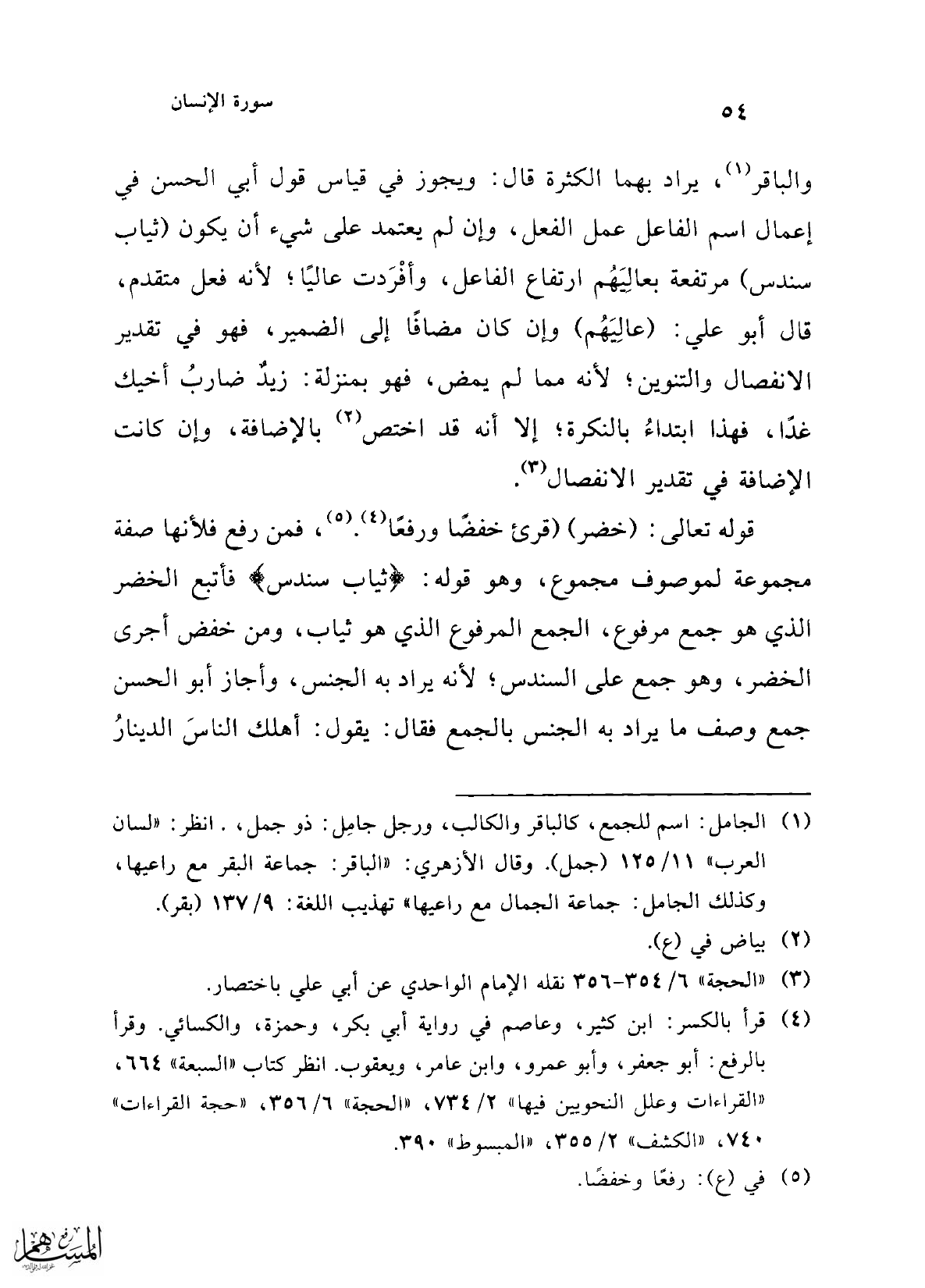 (¬3) "الحجة" 6/ 354 - 356 نقله الإمام الواحدي عن أبي علي باختصار.