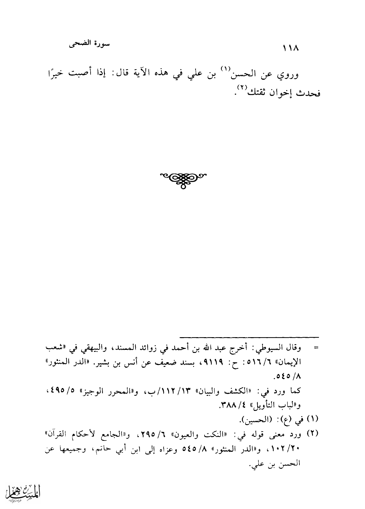 (¬2) ورد معنى قوله في: "النكت والعيون" 6/ 295، و"الجامع لأحكام القرآن" 20/ 102، و"الدر المنثور" 8/ 545 وعزاه إلى ابن أبي حاتم، وجميعها عن الحسن بن علي.