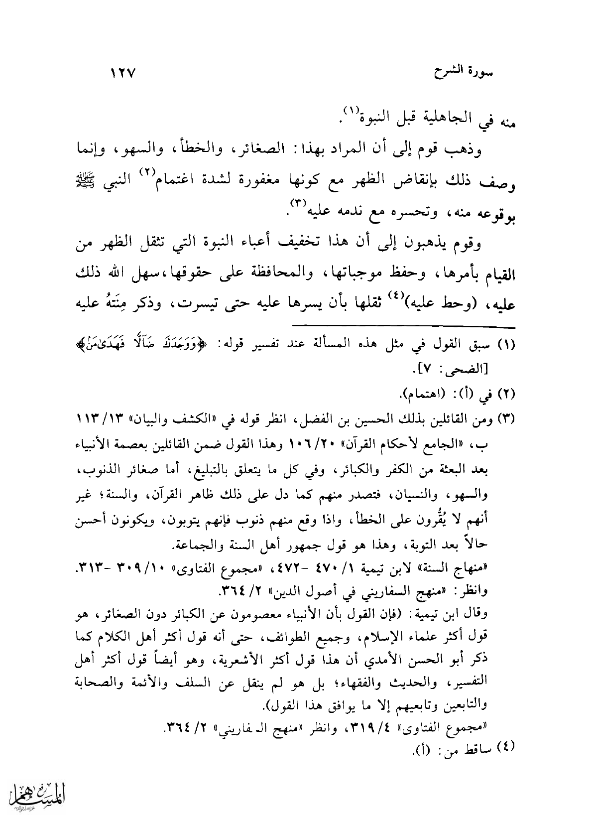 "منهاج السنة" لابن تيمية 1/ 470 - 472، "مجموع الفتاوى" 10/ 309 - 313. وانظر: "منهج السفاريني في أصول الدين" 2/ 364.