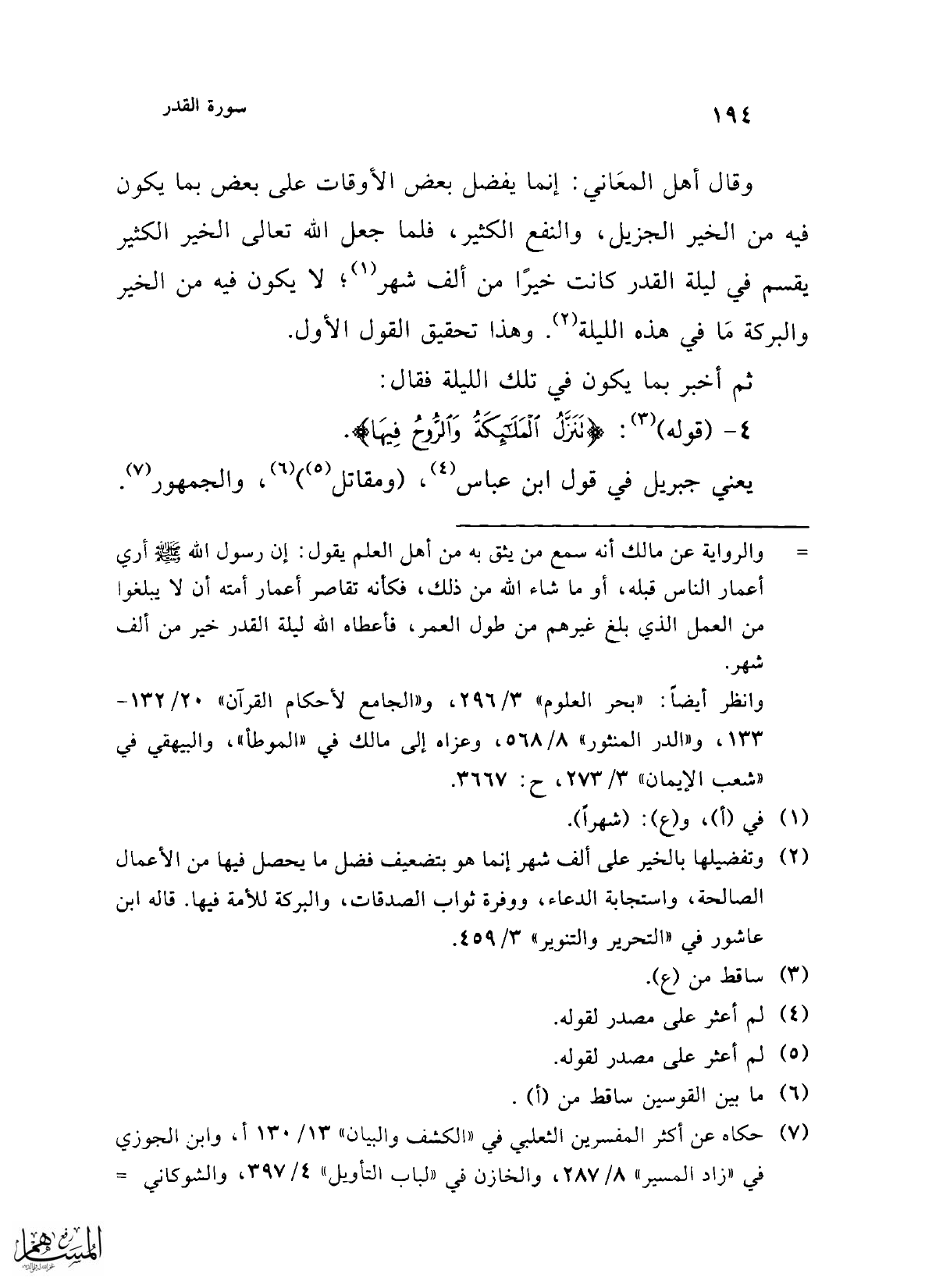 4 - (قوله) (¬3): {تَنَزَّلُ الْمَلَائِكَةُ وَالرُّوحُ فِيهَا}.
