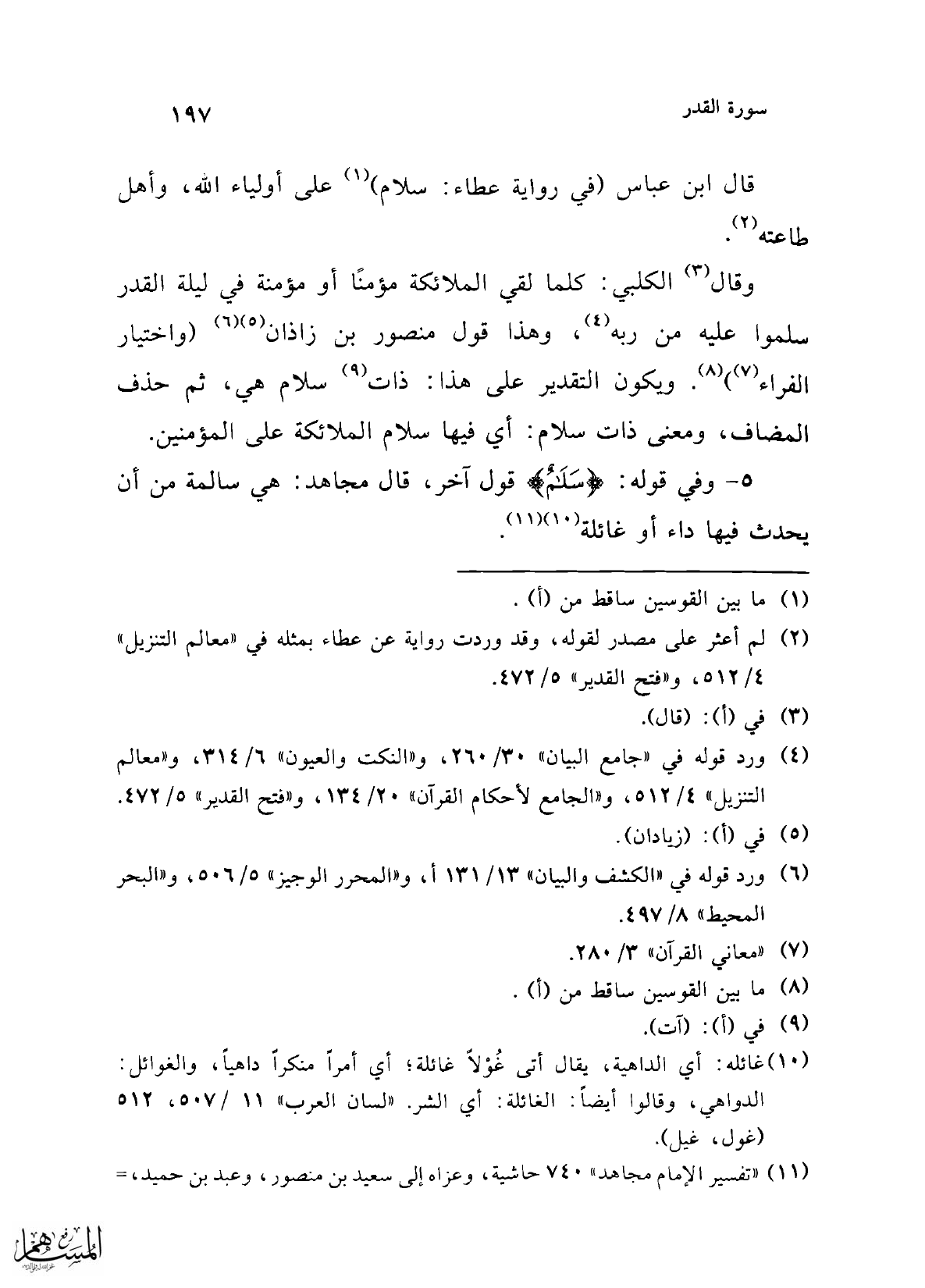 (¬11) "تفسير الإمام مجاهد" 740 حاشية، وعزاه إلى سعيد بن منصور، وعبد بن حميد، =
