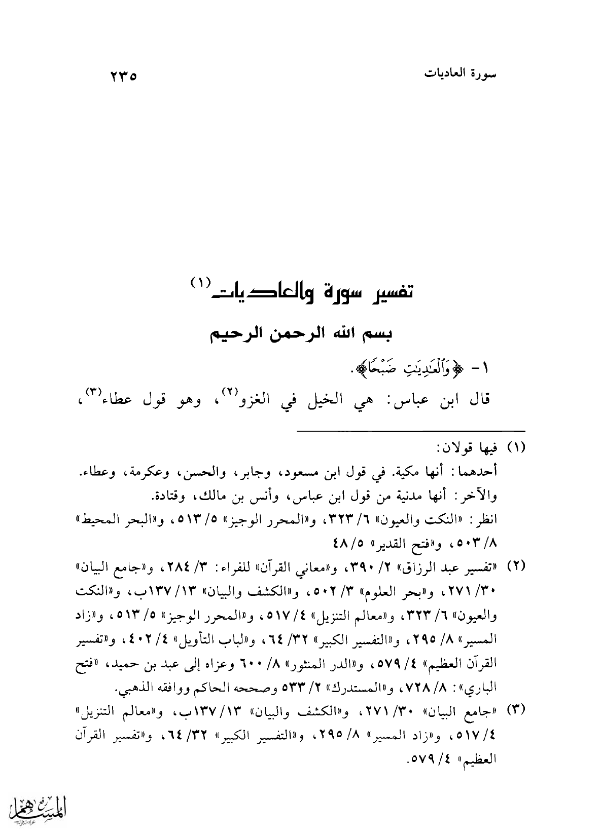 تفسير سورة والعاديات (¬1)