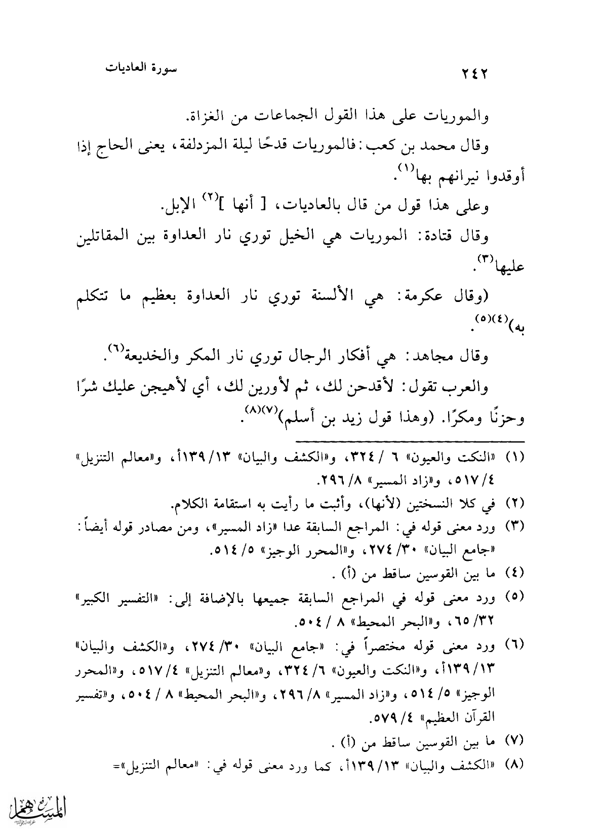 (¬3) ورد معنى قوله في: المراجع السابقة عدا "زاد المسير"، ومن مصادر قوله أيضًا: "جامع البيان" 30/ 274، و"المحرر الوجيز" 5/ 514.