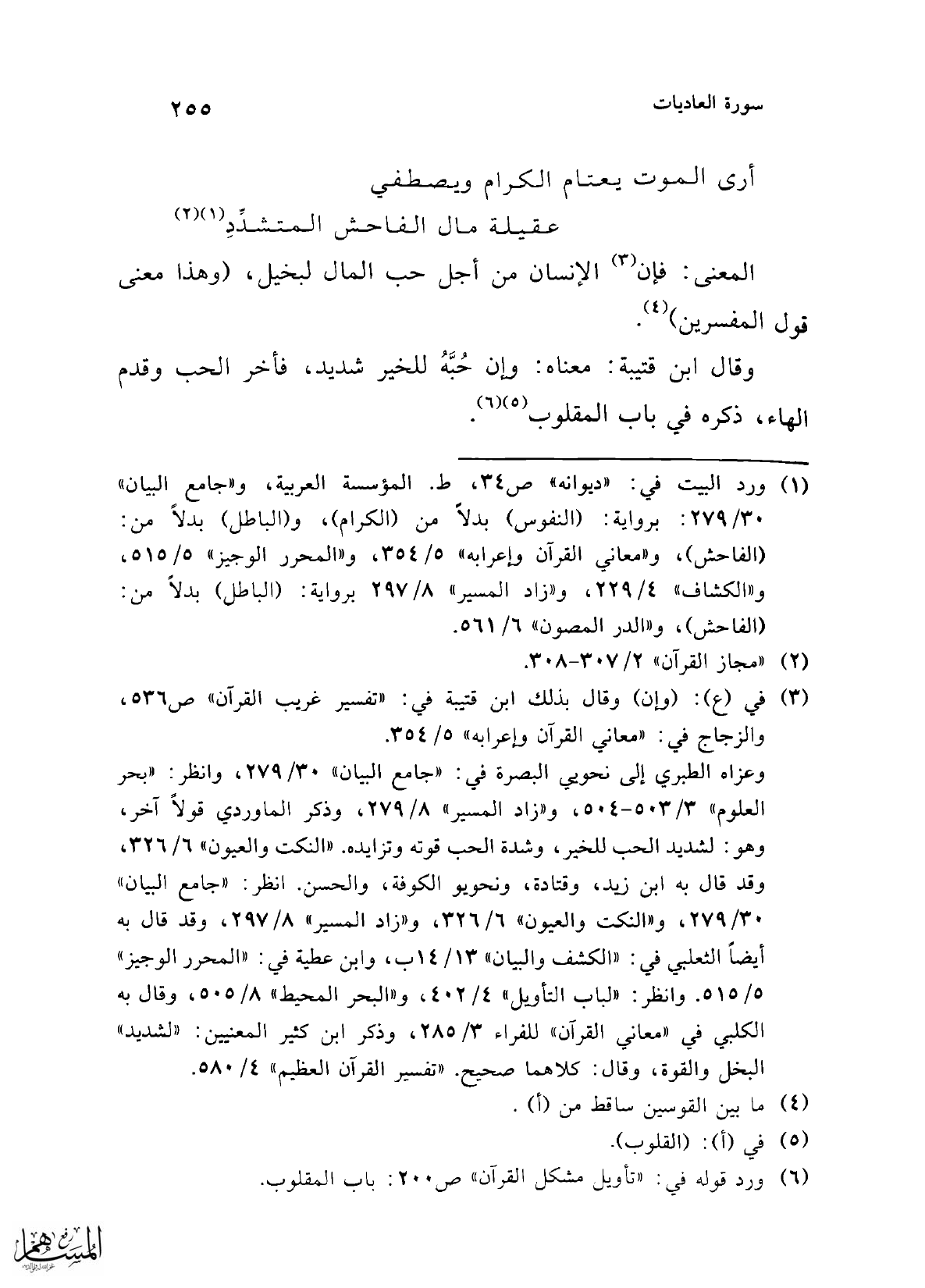 (¬1) ورد البيت في: "ديوانه" ص 34، ط. المؤسسة العربية، و"جامع البيان" 30/ 279: برواية: (النفوس) بدلاً من (الكرام)، و (الباطل) بدلاً من: (الفاحش)، و"معاني القرآن وإعرابه" 5/ 354، و"المحرر الوجيز" 5/ 515، و"الكشاف" 4/ 229، و"زاد المسير" 8/ 297 برواية: (الباطل) بدلاً من: (الفاحش)، و"الدر المصون" 6/ 561.