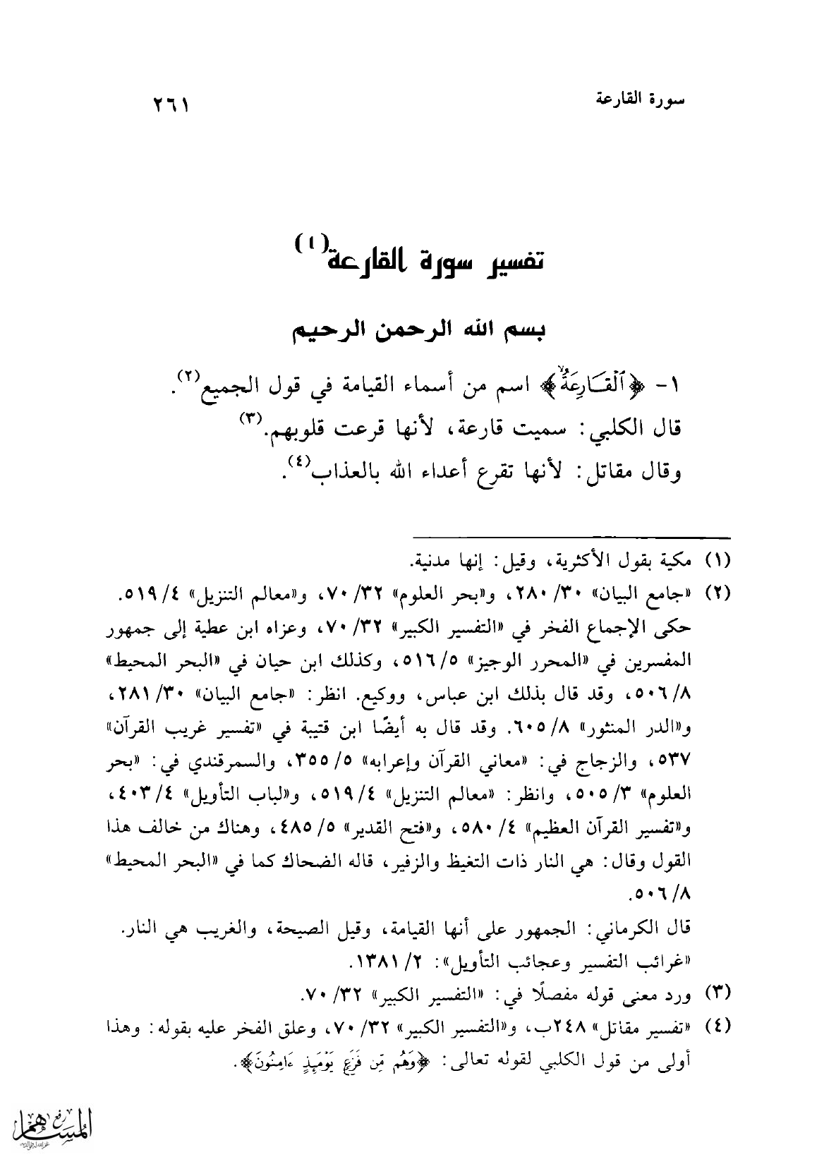 1 - {الْقَارِعَةُ} اسم من أسماء القيامة في قول الجميع (¬2)