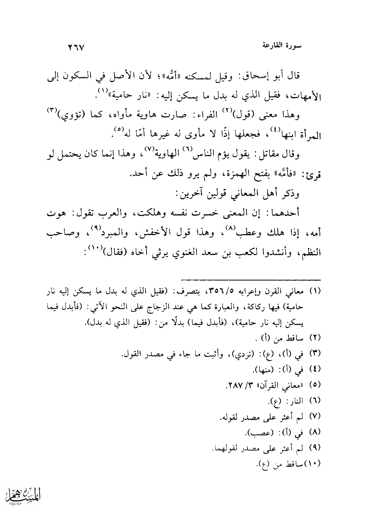 (¬5) "معاني القرآن" 3/ 287.