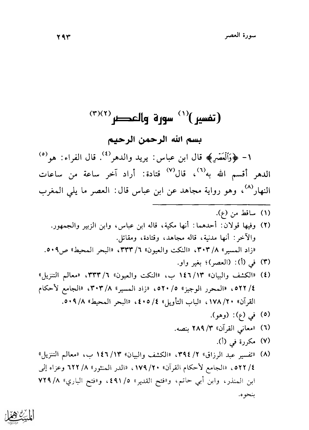 (تفسير) (¬1) سورة والعصر (¬2) (¬3)