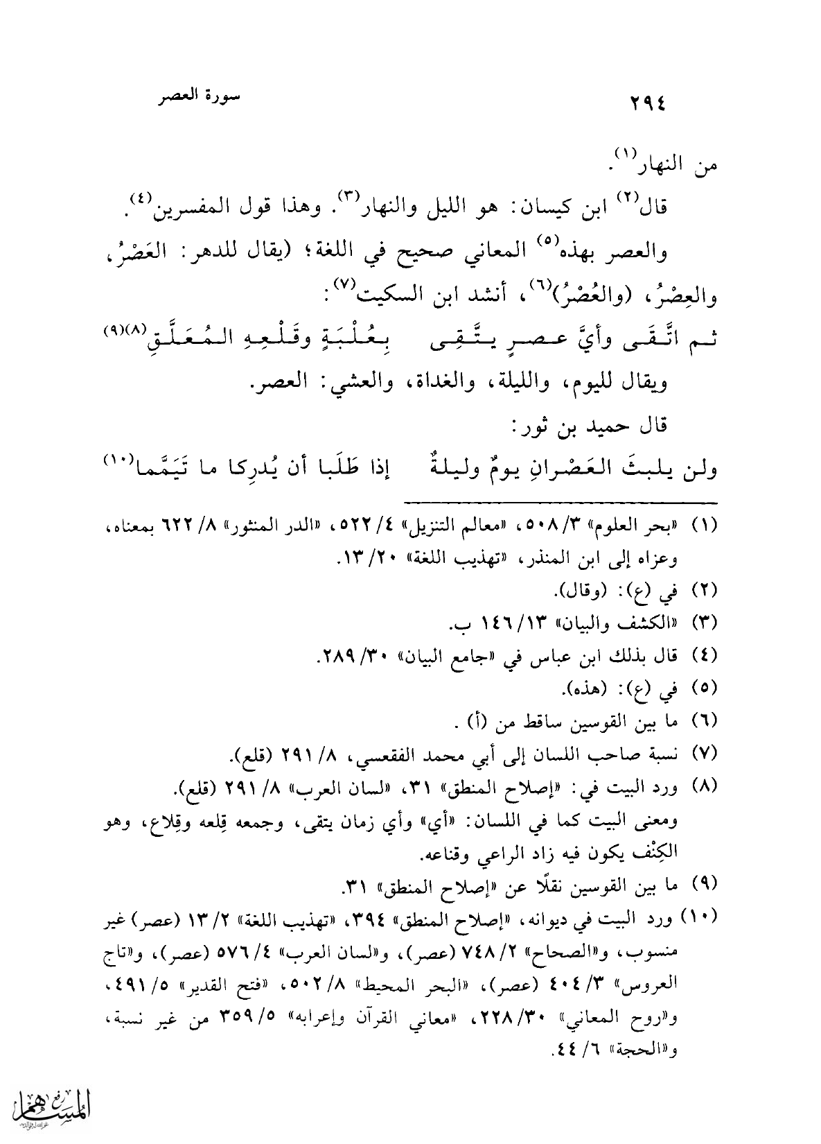 (¬10) ورد البيت في ديوانه، "إصلاح المنطق" 394، "تهذيب اللغة" 2/ 13 (عصر) غير منسوب، و"الصحاح" 2/ 748 (عصر)، و"لسان العرب" 4/ 576 (عصر)، و"تاج العروس" 3/ 404 (عصر)، "البحر المحيط" 8/ 502، "فتح القدير" 5/ 491، و"روح المعاني" 30/ 228، "معاني القرآن وإعرابه" 5/ 359 من غير نسبة، و"الحجة" 6/ 44.