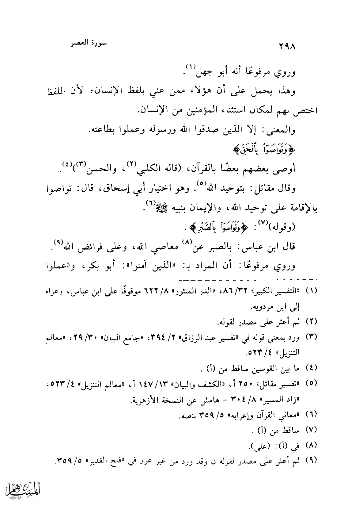 (¬3) ورد بمعنى قوله في "تفسير عبد الرزاق" 2/ 394، "جامع البيان" 30/ 29، "معالم التنزيل" 4/ 523.
