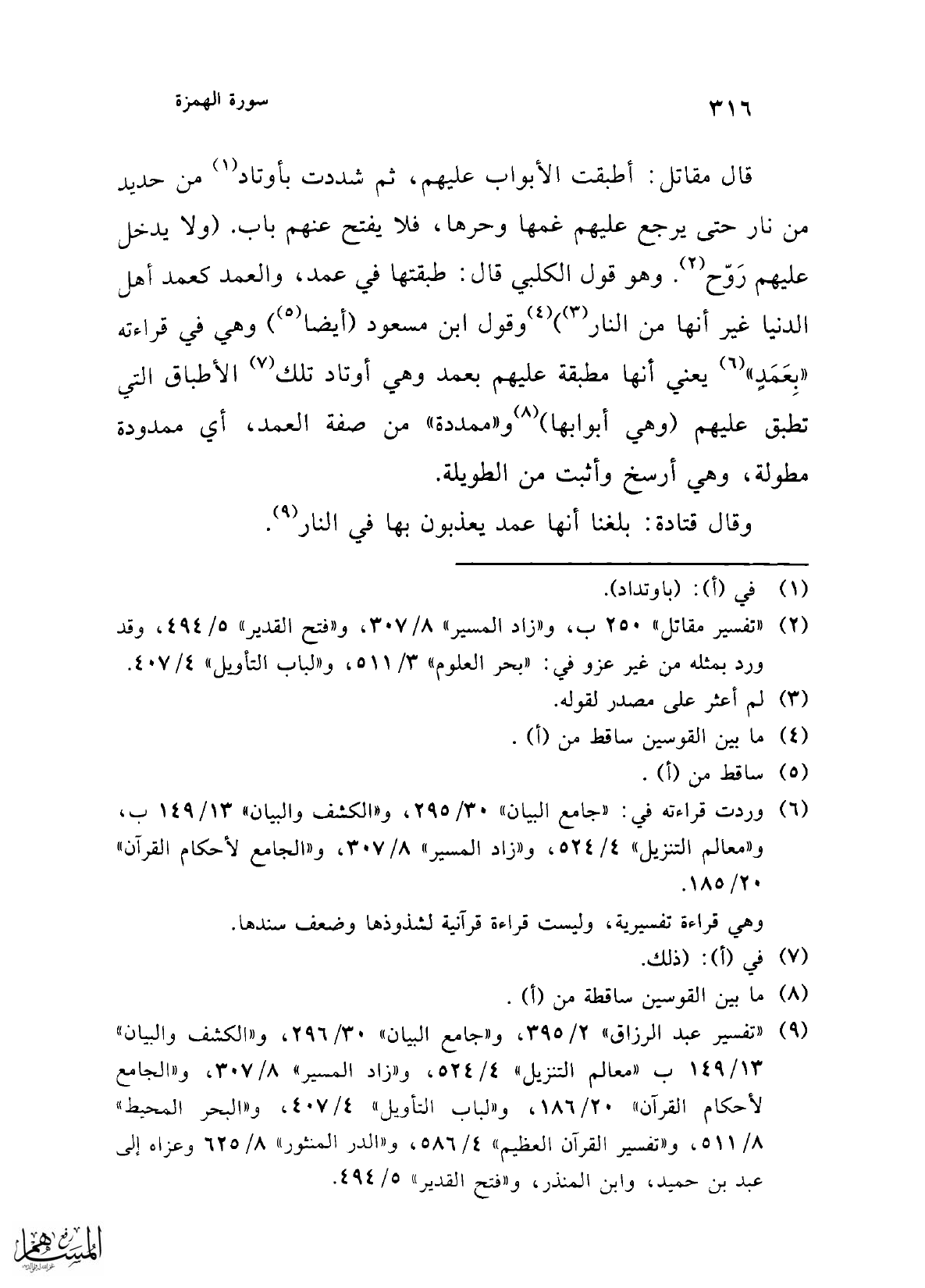(¬6) وردت قراءته في: "جامع البيان" 30/ 295، و"الكشف والبيان" 13/ 149 ب، و"معالم التنزيل" 4/ 524، و"زاد المسير" 8/ 307، و"الجامع لأحكام القرآن" 20/ 185.