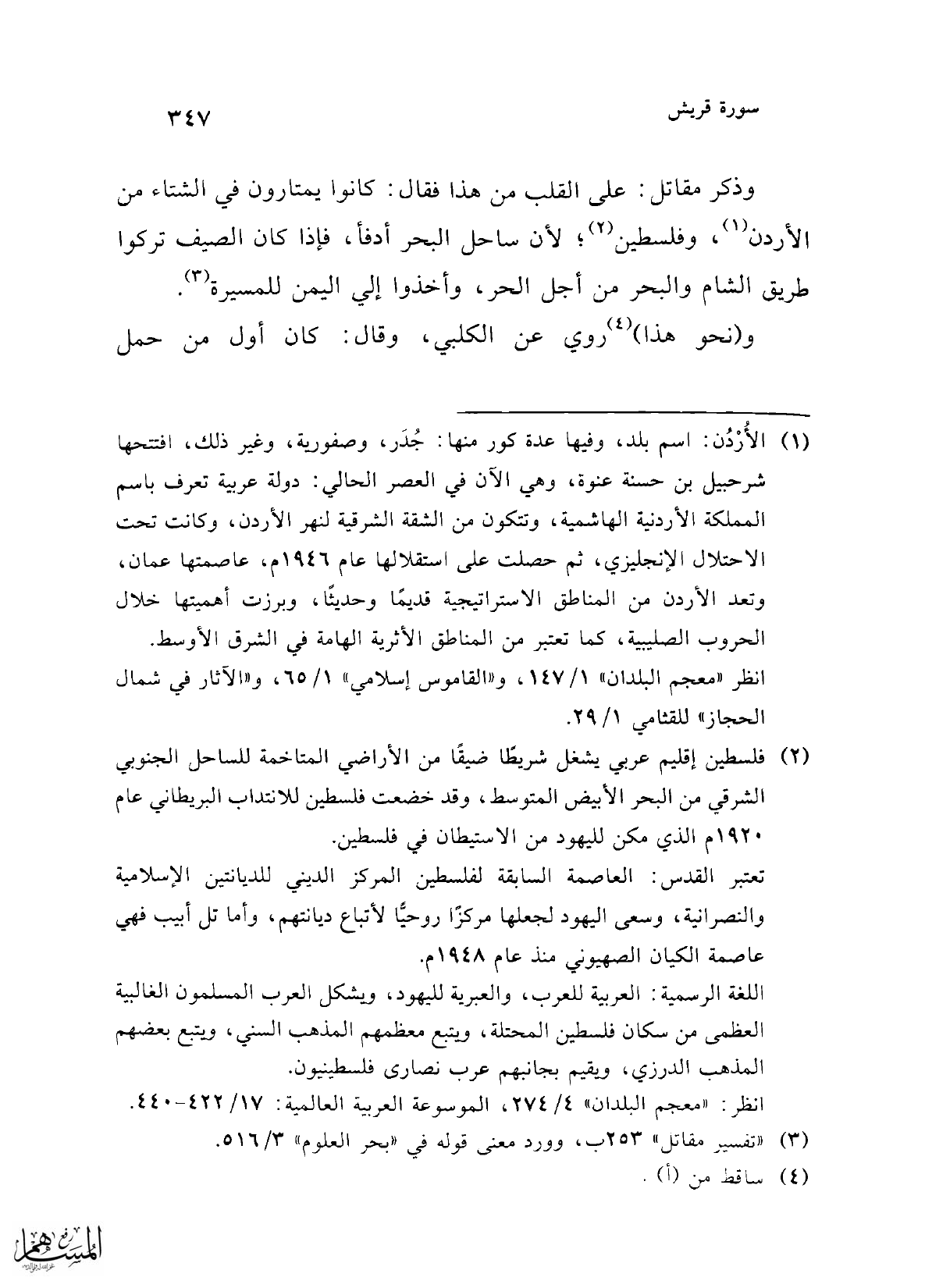 (¬3) "تفسير مقاتل" 253 ب، وورد معنى قوله في "بحر العلوم" 3/ 516.