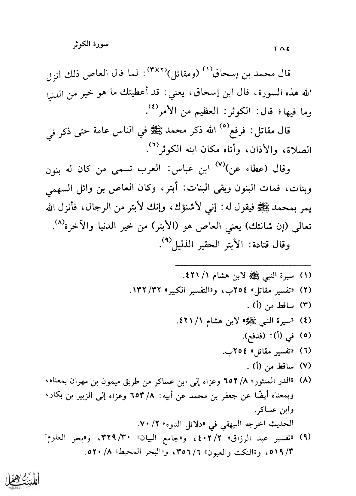 (¬9) "تفسير عبد الرزاق" 2/ 402، و"جامع البيان" 30/ 329، و"بحر العلوم" 3/ 519، و"النكت والعيون" 6/ 356، و"البحر المحيط" 8/ 520