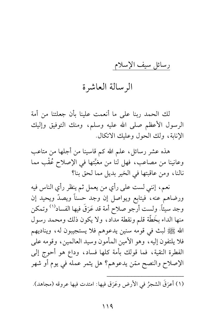 هذه عشر رسائل، علم الله كم قاسينا من أجلها من متاعب وعانينا من مصاعب، فهل لنا من مغبَّتها في الإصلاح عُقْب مما نالنا، ومن عاقبتها في الخير بديل مما لحق بنا؟