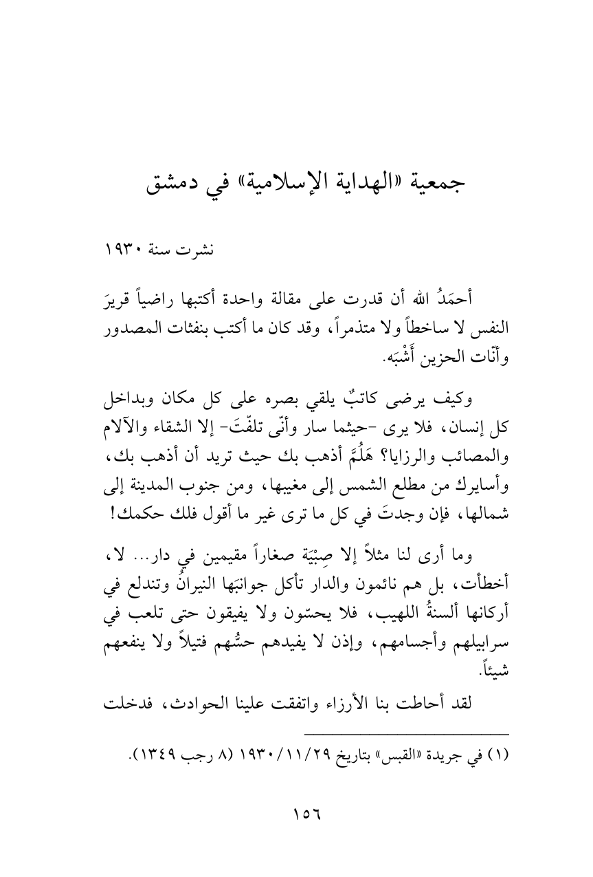 (¬1) في جريدة «القبس» بتاريخ 29/ 11/1930 (8 رجب 1349).