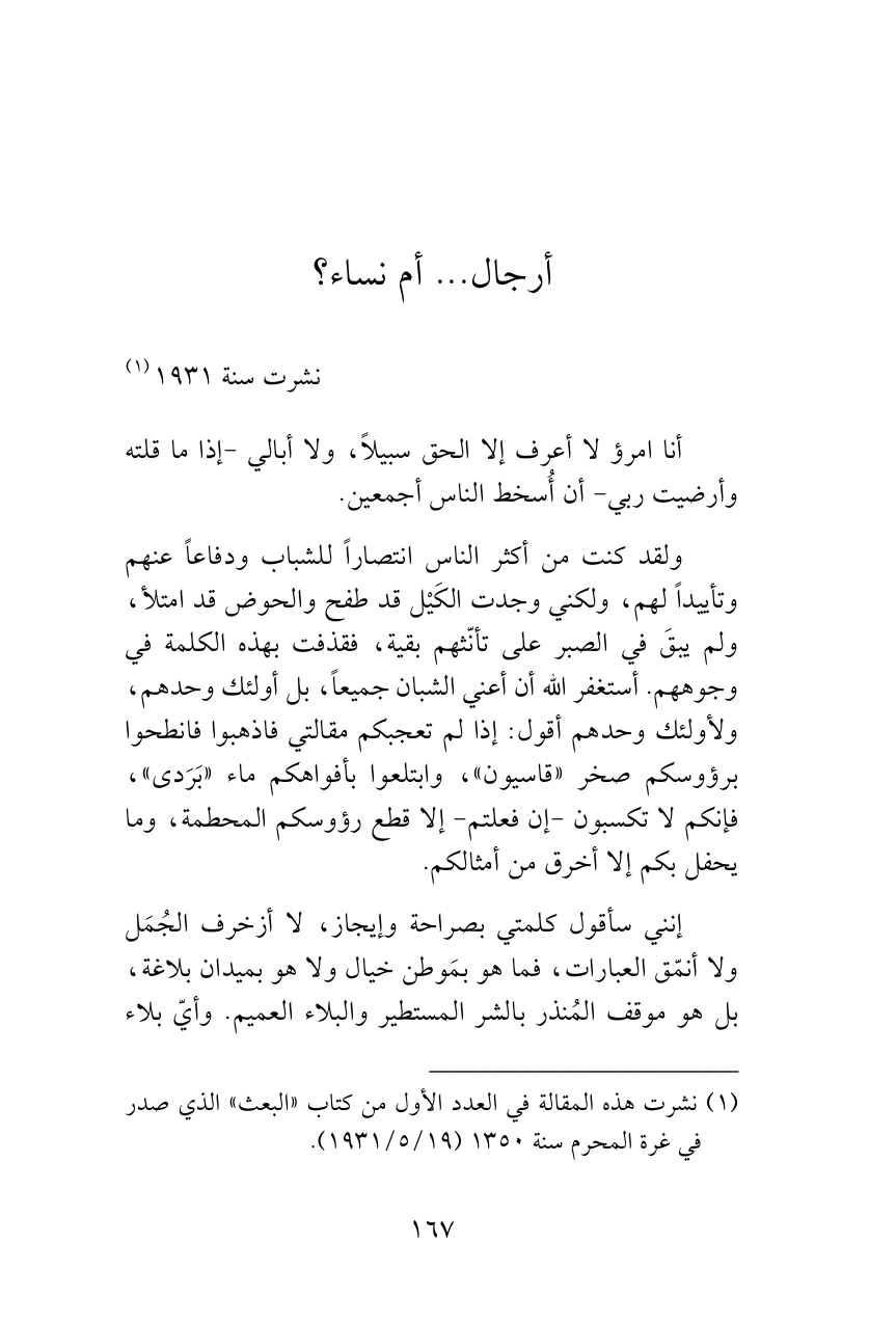 (¬1) نشرت هذه المقالة في العدد الأول من كتاب «البعث» الذي صدر في غرة المحرم سنة 1350 (19/ 5/1931).