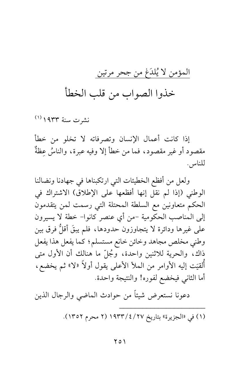(¬1) في «الجزيرة» بتاريخ 27/ 4/1933 (2 محرم 1352).