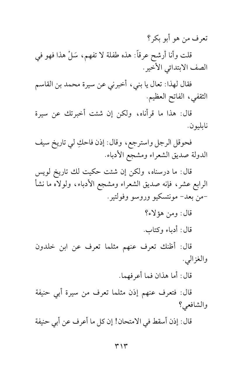 قال: أظنك تعرف عنهم مثلما تعرف عن ابن خلدون والغزالي.