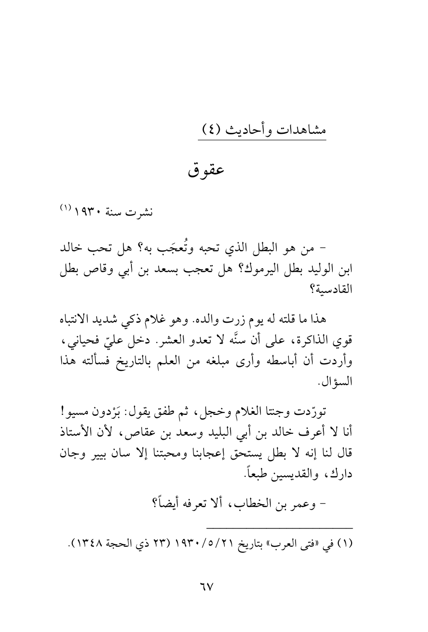 (¬1) في «فتى العرب» بتاريخ 21/ 5/1930 (23 ذي الحجة 1348).