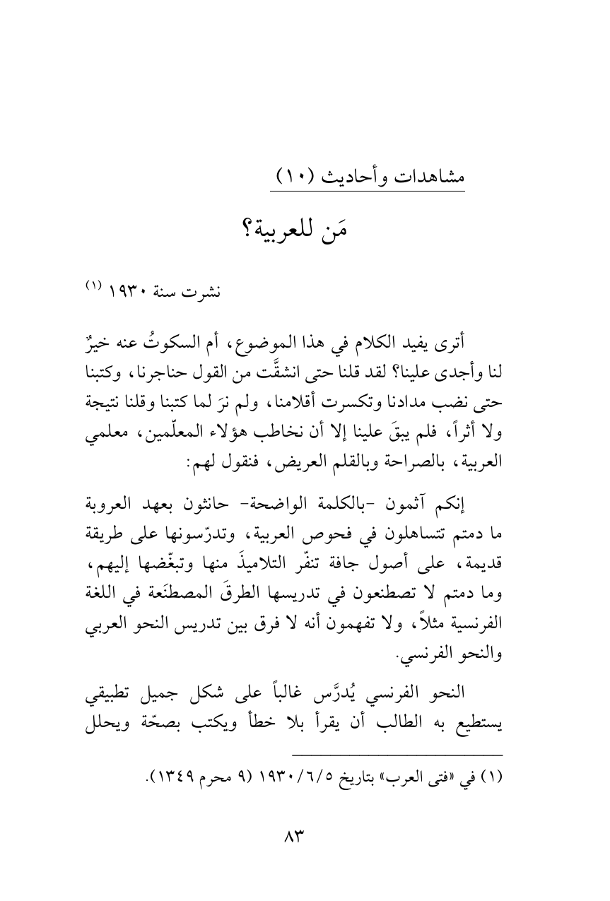 (¬1) في «فتى العرب» بتاريخ 5/ 6/1930 (9 محرم 1349).