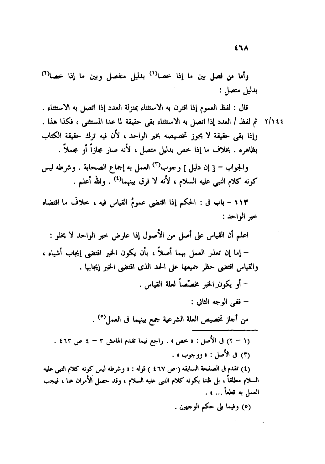 ١١٣ - باب في: الحكم إذا اقتضي عموم القياس فيه، خلاف ما اقتضاه خبر الواحد: