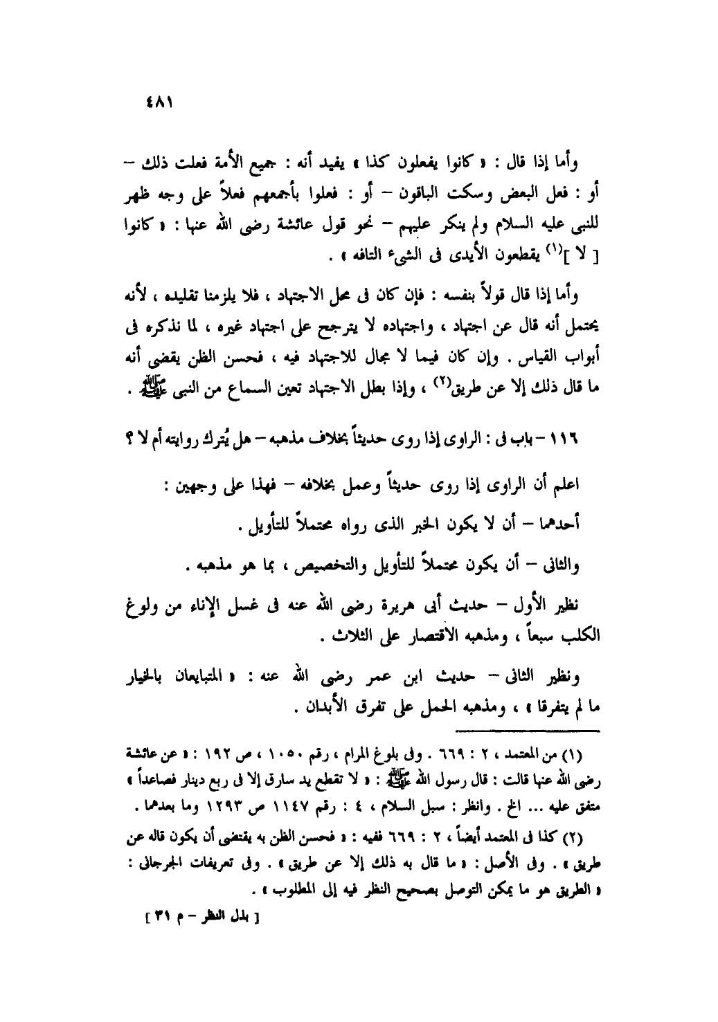 ١١٦ - باب في: الراوي إذا روى حديثاً لخلاف مذهبه- هل يترك روايته أم لا؟