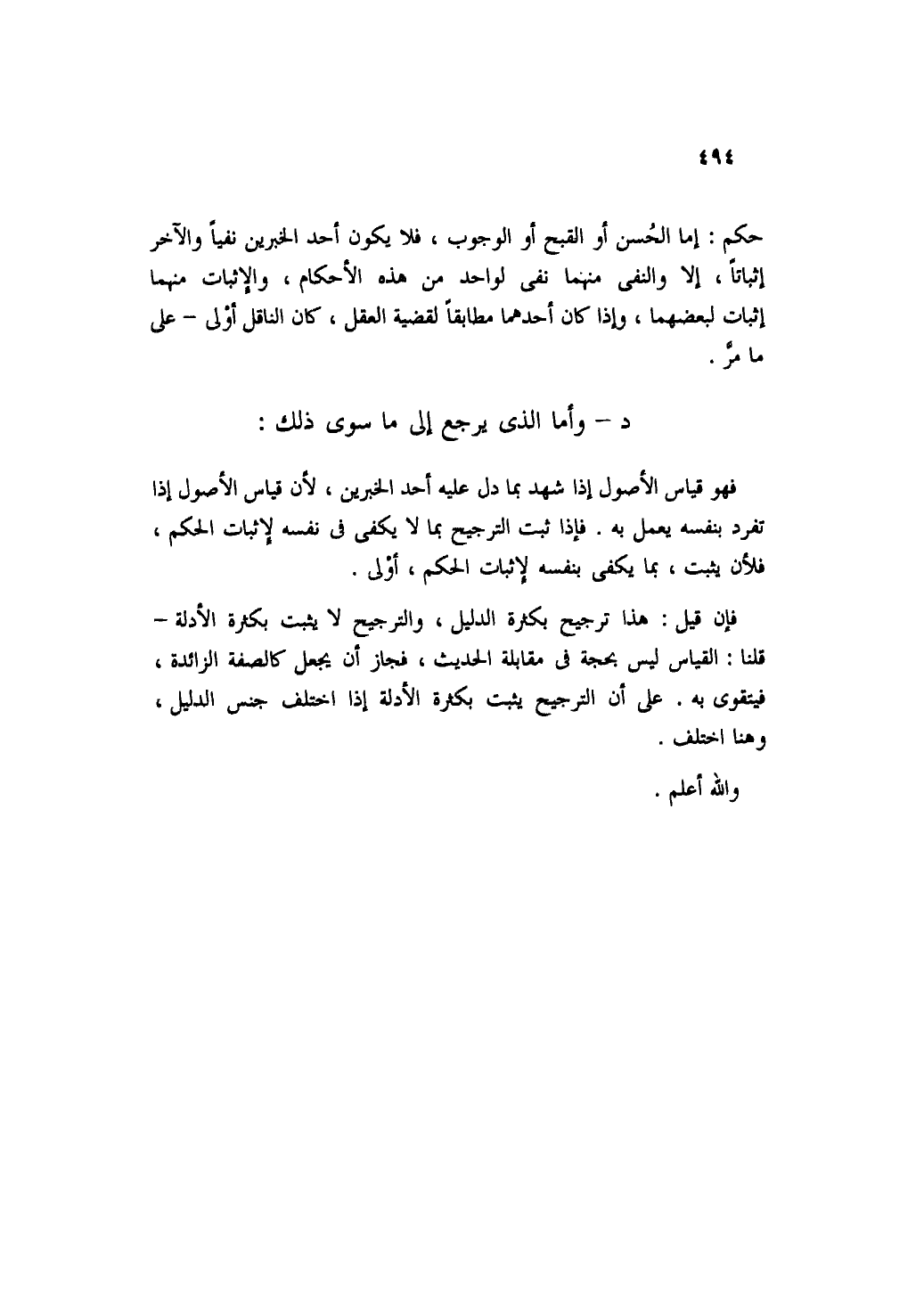 حكم: إما الحسن أو القبح أو الوجوب، فلا يكون أحد الخبرين نفياً والآخر إثباتاً، إلا والنفي منهما نفى لواحد من هذه الأحكام، والإثبات منهما إثبات لبعضهما، وإذا كان أحدها مطابقاً لقضية العقل، كان الناقل أولى- على ما مر.
