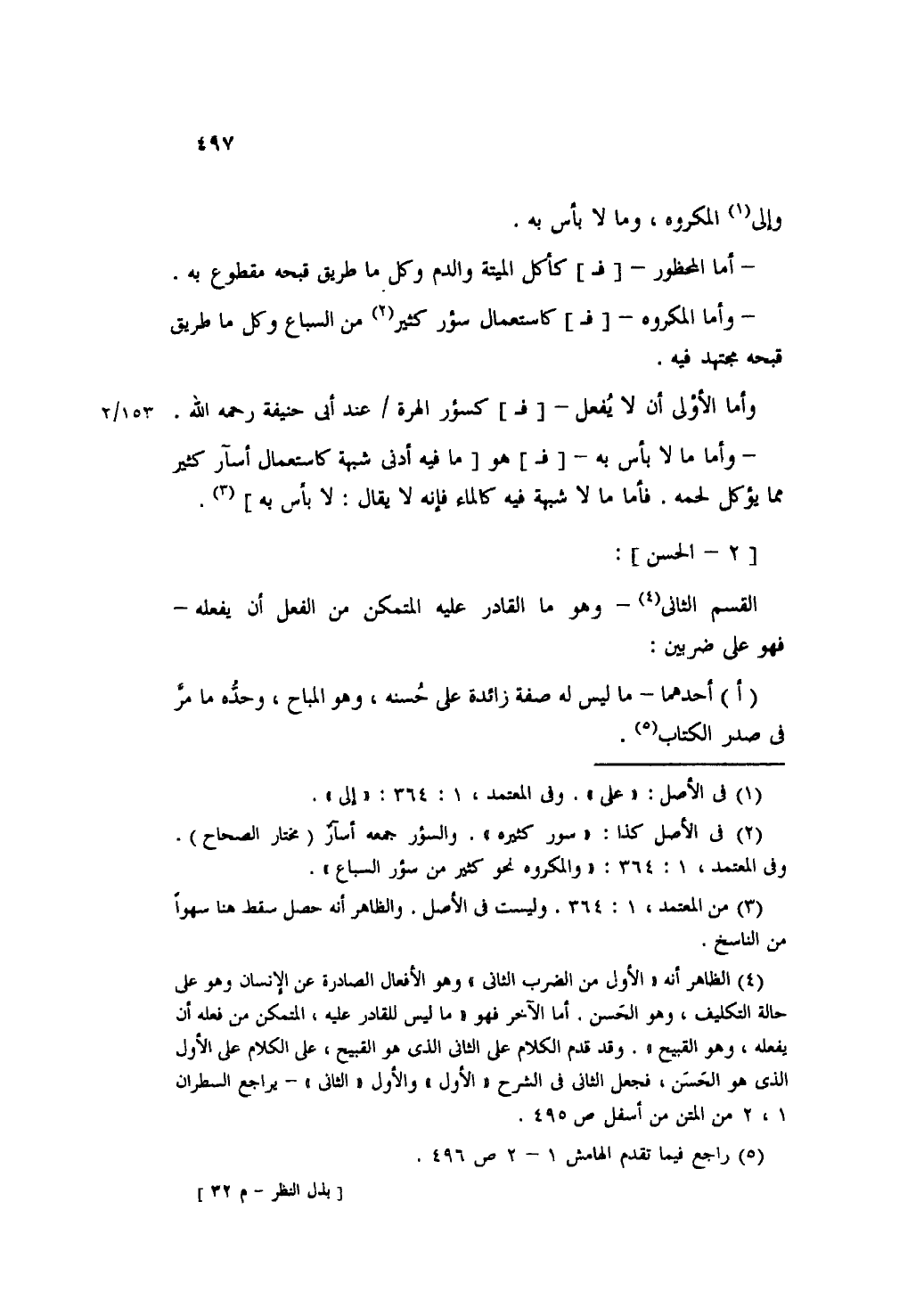- أما المحظور-[ف] كأكل الميتة والدم وكل ما طريق قبحه مقطوع به.