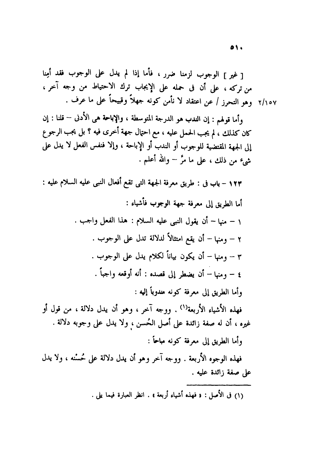١٢٣ - باب في: طريق معرفة الجهة التي تقع أفعال النبي عليه السلام عليه: