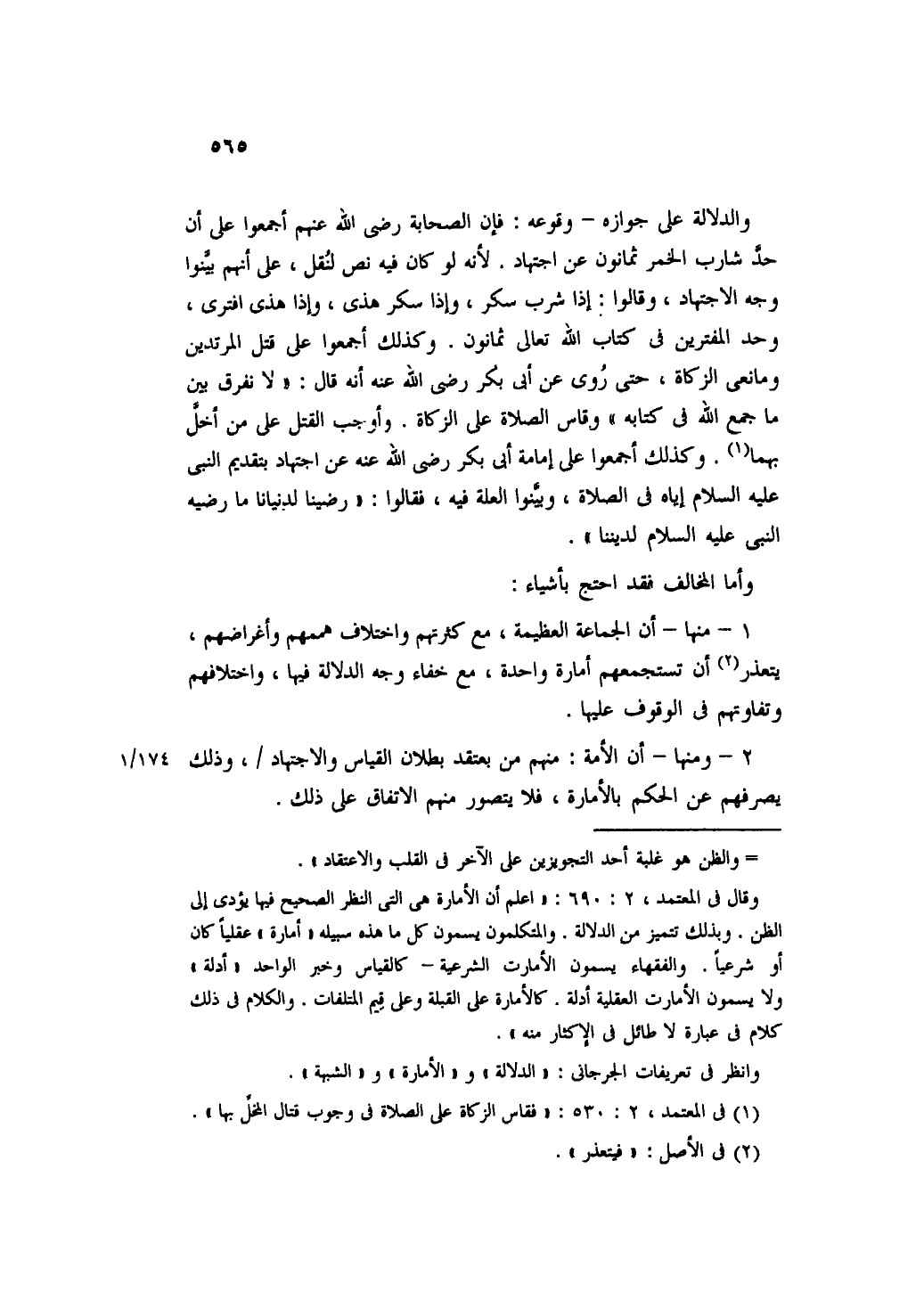 ٢ - ومنها- أن الأمة: منهم من يعتقد بطلان القياس والاجتهاد، وذلك يصرفهم عن الحكم بالأمارة، فلا يتصور منهم الاتفاق على ذلك.