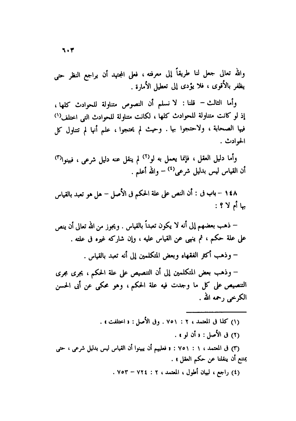 ١٤٨ - باب في: أن النص على علة الحكم في الأصل- هل هو تعبد بالقياس بها أم لا؟