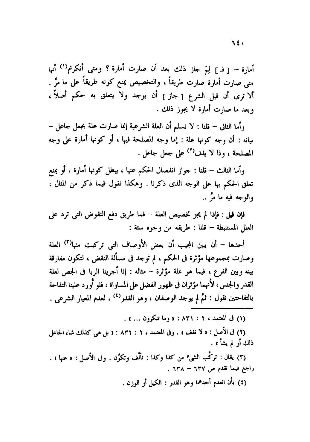 وأما الثالث- قلنا: جواز انفصال الحكم عنها، يبطل كونها أمارة، أو يمنع تعلق الحكم بها على الوجه الذي ذكرنها. وهكذا نقول فيما ذكر من المثال، والوجه فيه ما مر ..