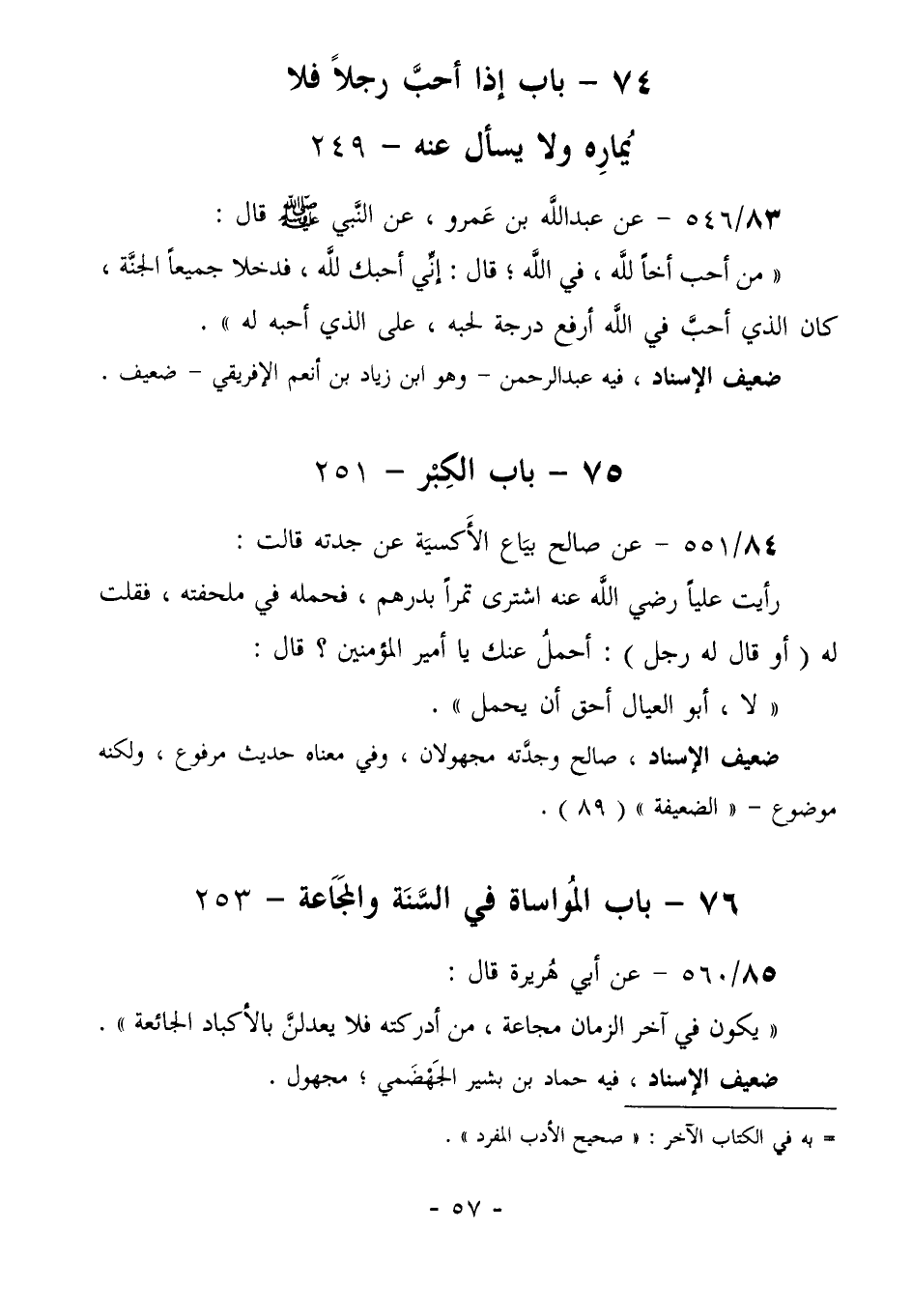 74= بَابُ إِذَا أَحَبَّ رَجُلًا فَلَا يماره ولا يسأل عنه- 249