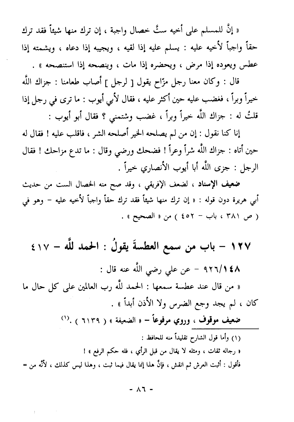 126= بَابُ مَنْ سَمِعَ الْعَطْسَةَ يَقُولُ: الحمد لله- 417