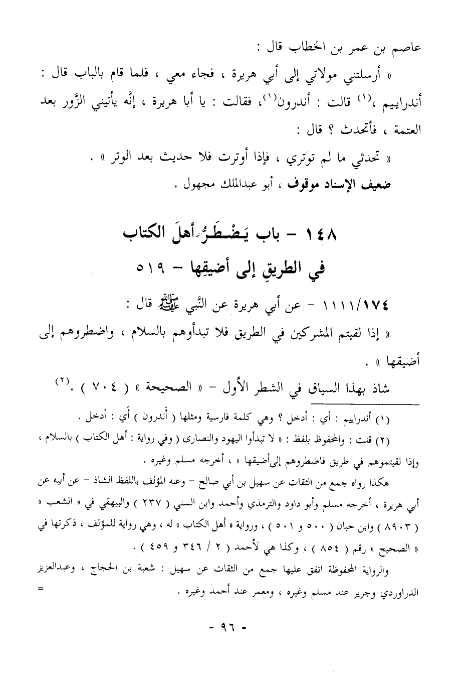 147= بَابُ يُضْطَرُّ أَهْلُ الْكِتَابِ فِي الطريق إلى أضيقها- 519