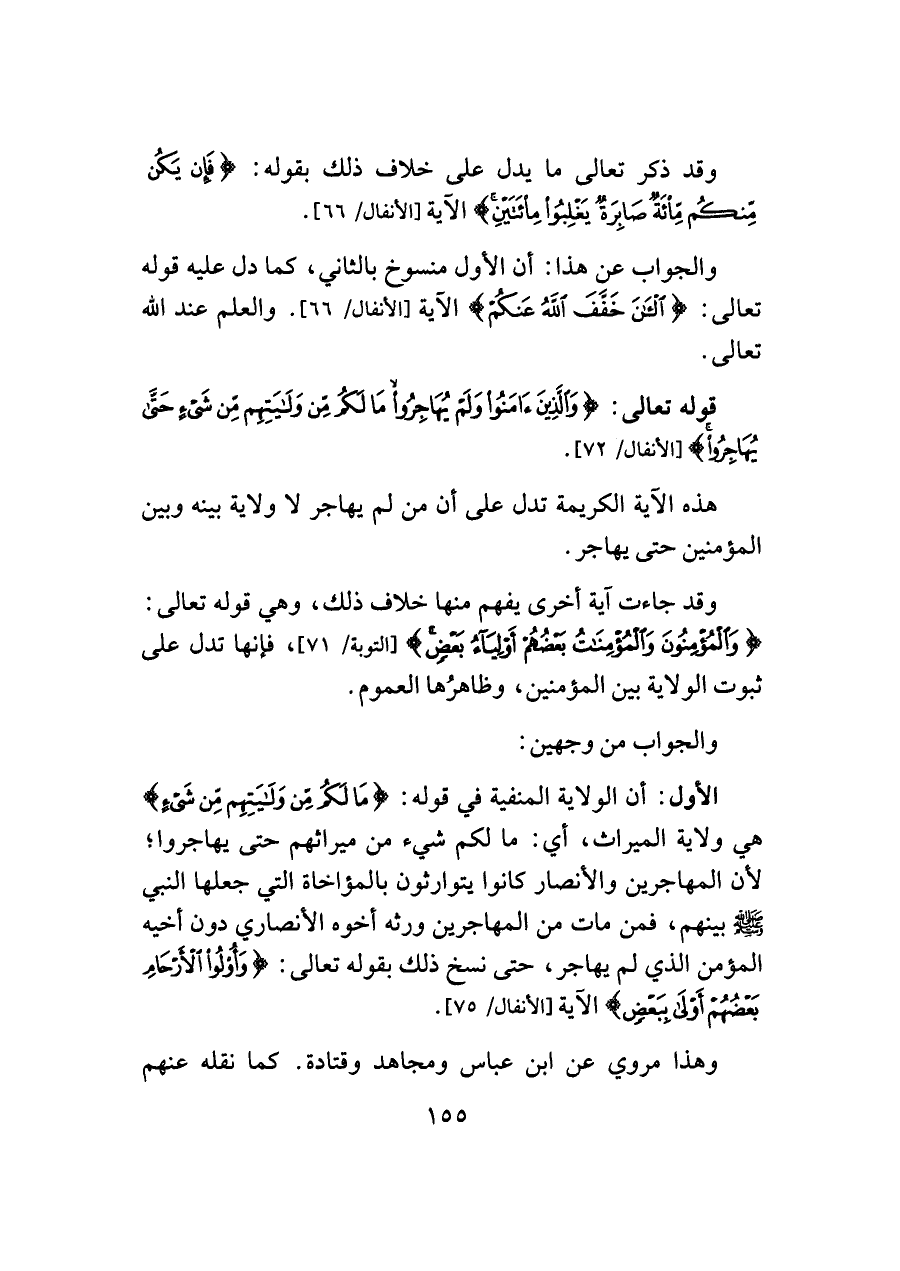 قوله تعالى: {وَالَّذِينَ آمَنُوا وَلَمْ يُهَاجِرُوا مَا لَكُمْ مِنْ وَلَايَتِهِمْ مِنْ شَيْءٍ حَتَّى يُهَاجِرُوا} [الأنفال/ ٧٢].