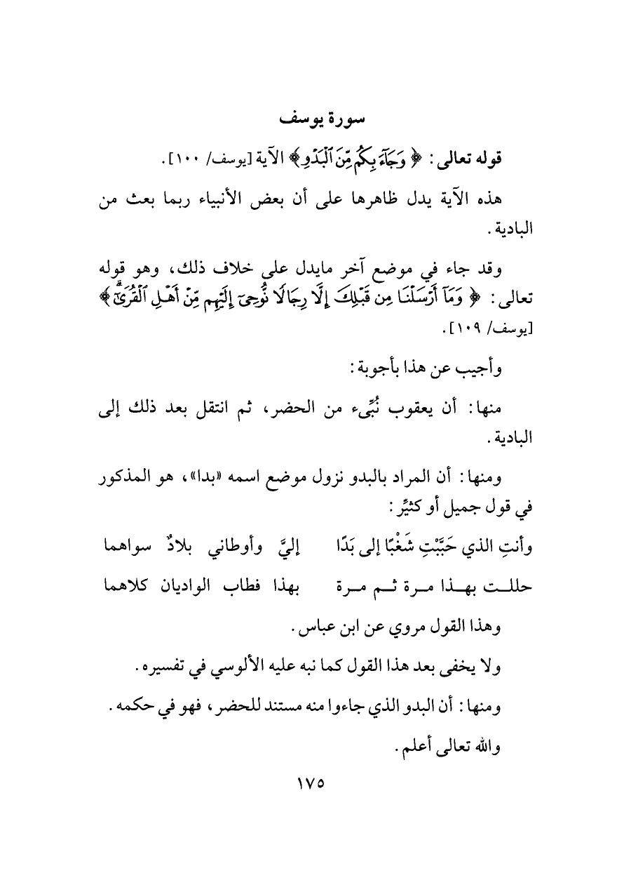 هذه الآية يدل ظاهرها على أن بعض الأنبياء ربما بعث من البادية.