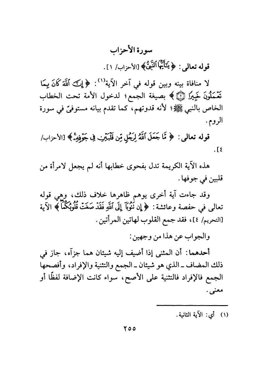 قوله تعالى: {مَا جَعَلَ اللَّهُ لِرَجُلٍ مِنْ قَلْبَيْنِ فِي جَوْفِهِ} [الأحزاب/ ٤].