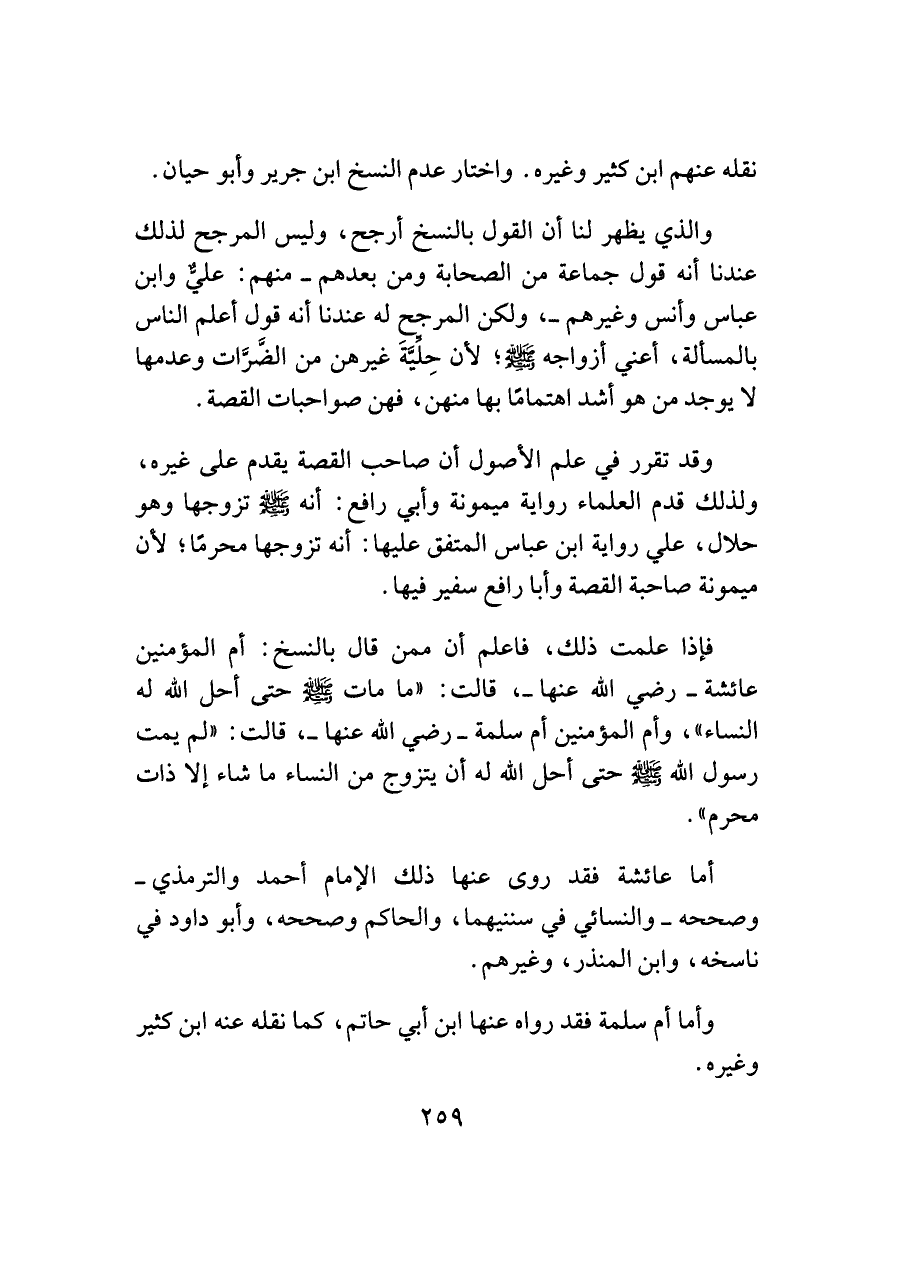 والذي يظهر لنا أن القول بالنسخ أرجح، وليس المرجح لذلك عندنا أنه قول جماعة من الصحابة ومن بعدهم -منهم: عليٌّ وابن عباس وأنس وغيرهم-، ولكن المرجح له عندنا أنه قول أعلم الناس بالمسألة، أعني أزواجه -صلى اللَّه عليه وسلم-؛ لأن حِلِّيَّةَ غيرهن من الضَّرَّات وعدمها لا يوجد من هو أشد اهتمامًا بها منهن، فهن صواحبات القصة.