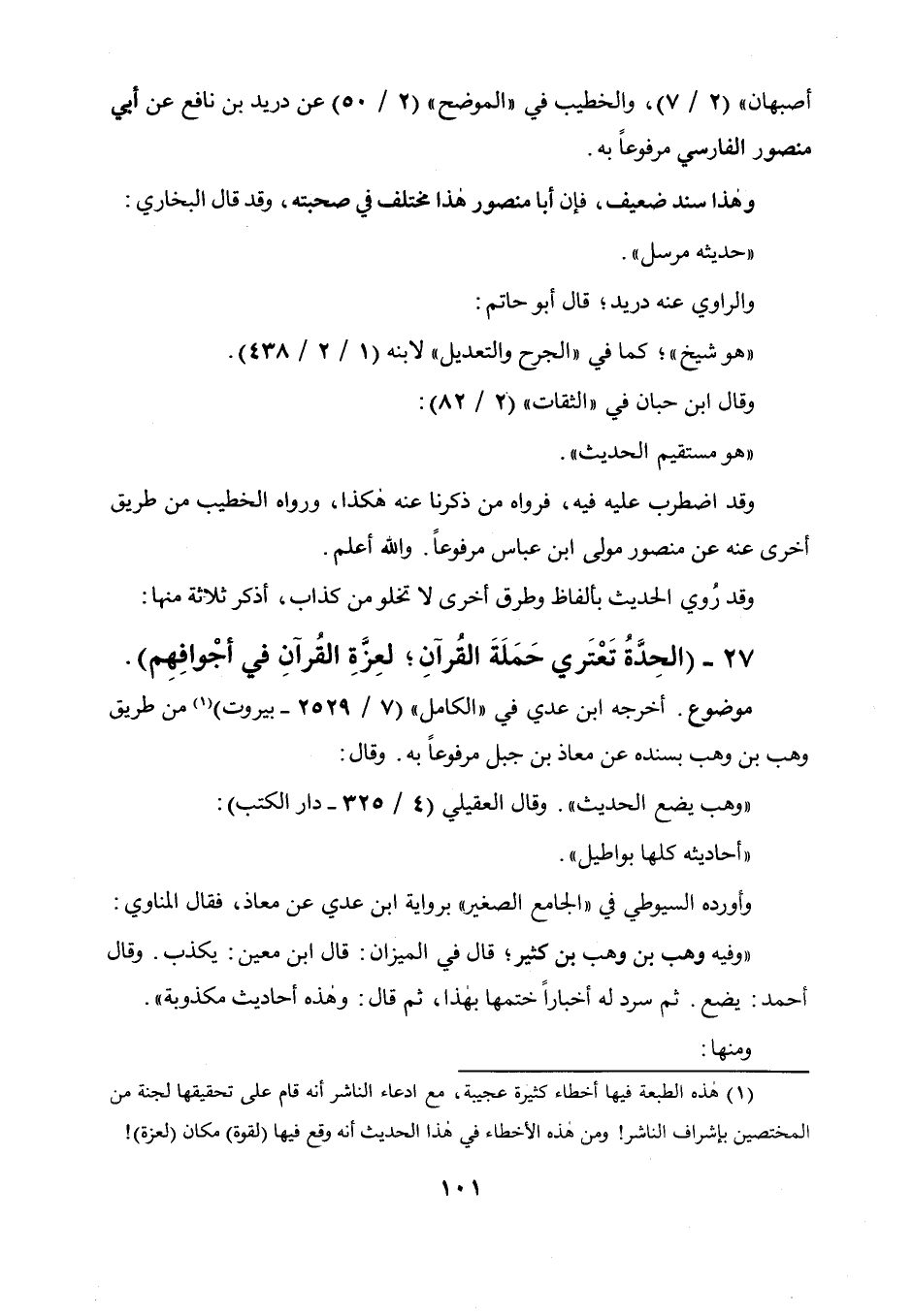 وهذا سند ضعيف، فإن أبا منصور هذا مختلف في صحبته، وقد قال البخاري: حديث مرسل، والراوي عنه دريد، قال أبو حاتم: هو شيخ كما في " الجرح والتعديل " لابنه (1 / 2 / 438) ، وقال ابن حبان في " الثقات " (2 / 82) : هو مستقيم الحديث، وقد اضطرب عليه فيه، فرواه من ذكرنا عنه هكذا، ورواه الخطيب من