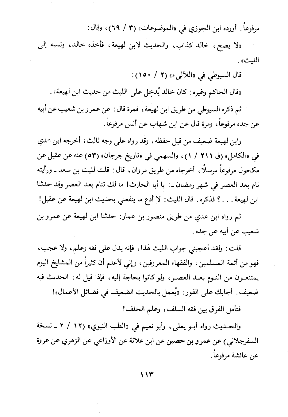حدثنا ابن لهيعة..؟ فذكره، قال الليث: لا أدع ما ينفعني بحديث ابن لهيعة عن عقيل! ثم رواه ابن عدي من طريق منصور بن عمار حدثنا ابن لهيعة عن عمرو بن شعيب عن أبيه عن جده.