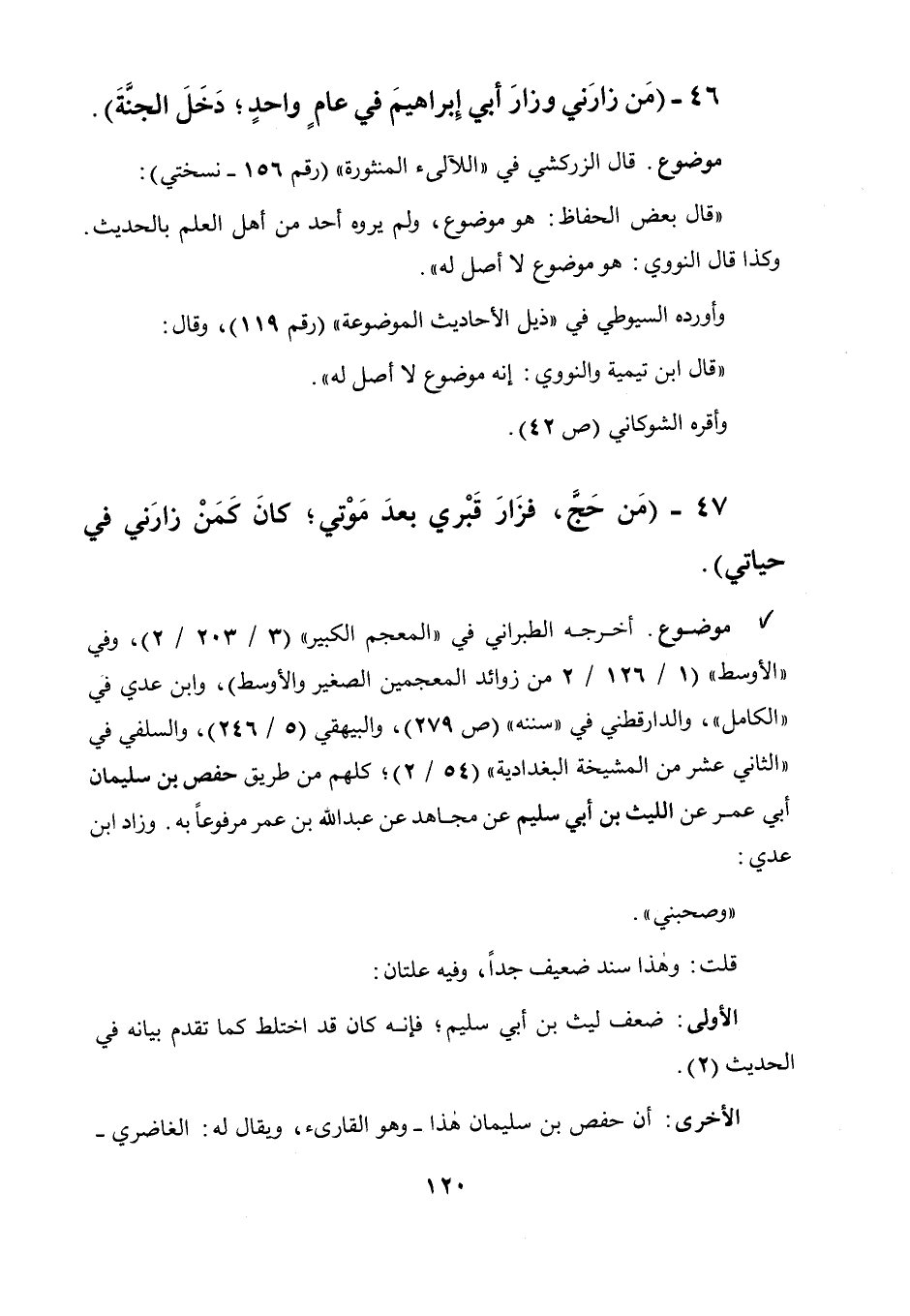 46 - " من زارني وزار أبي إبراهيم في عام واحد دخل الجنة ".