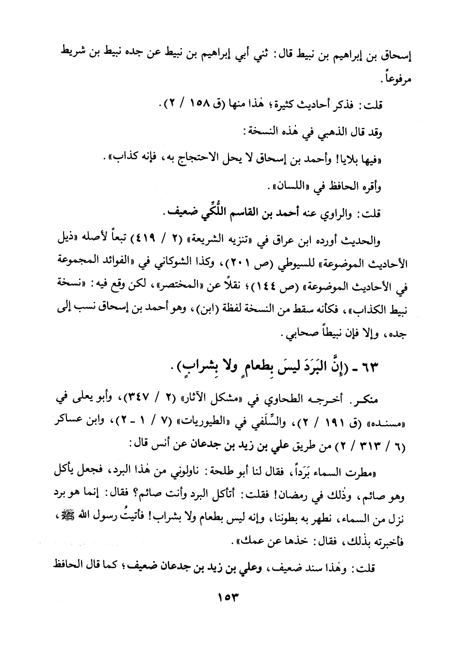 63 - " إن البرد ليس بطعام ولا بشراب ".