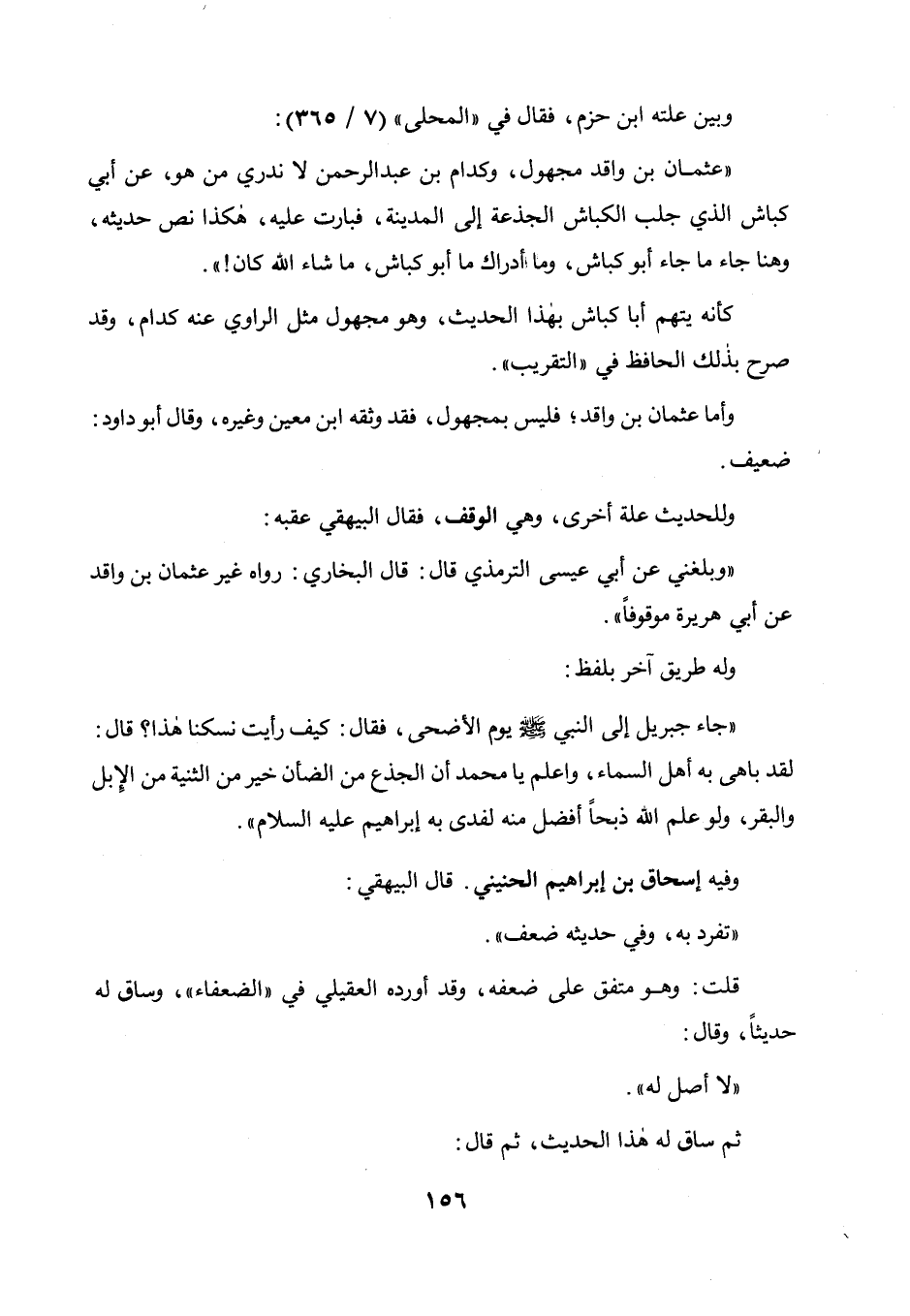 وبين علته ابن حزم فقال في " المحلى " (7 / 365) : عثمان بن واقد مجهول، وكدام بن عبد الرحمن لا ندري من هو، عن أبي كباش الذي جلب الكباش الجذعة إلى المدينة فبارت عليه، هكذا نص حديثه، وهنا جاء ما جاء