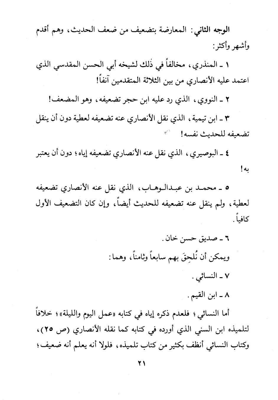 5- محمد بن عبد الوهاب، الذي نقل عنه الأنصاري تضعيفه لعطية، ولم ينقل عنه تضعيفه للحديث أيضاً، وإن كان التضعيف الأول كافياً.