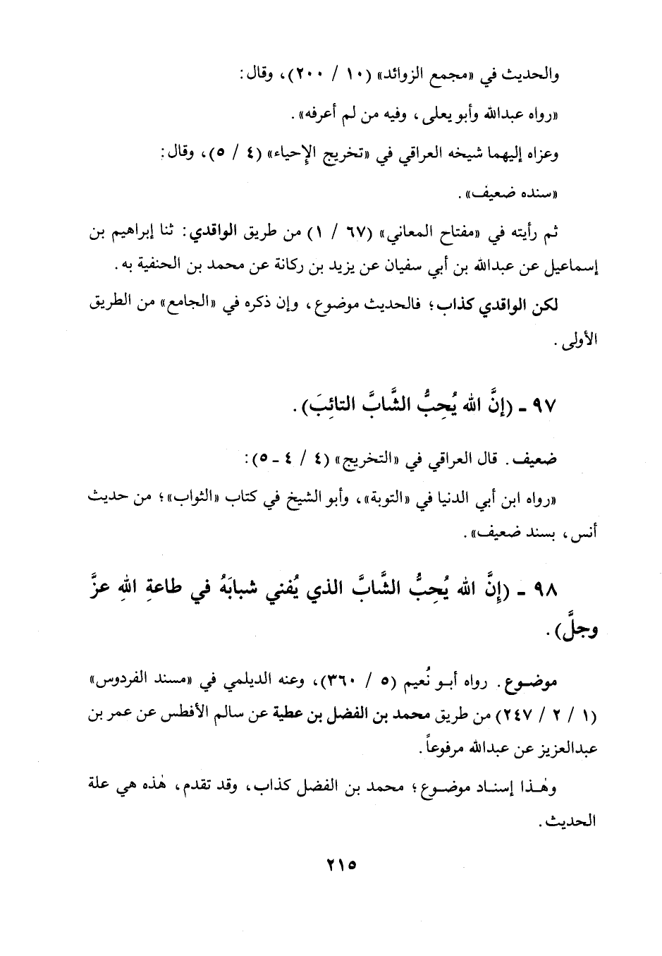 98 - " إن الله يحب الشاب الذي يفني شبابه في طاعة الله عز وجل ".