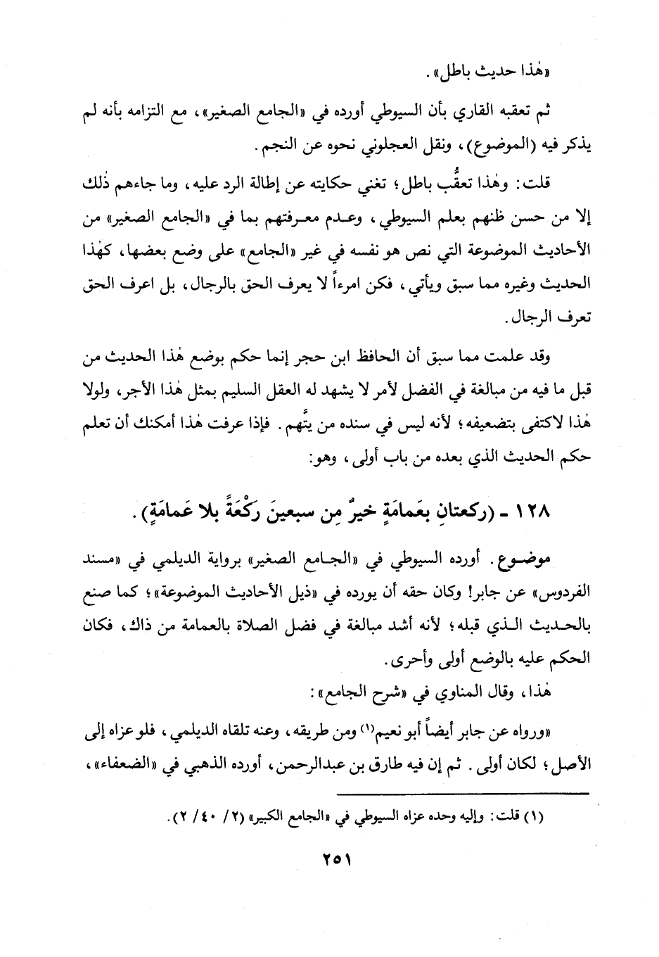 128 - " ركعتان بعمامة خير من سبعين ركعة بلا عمامة ".